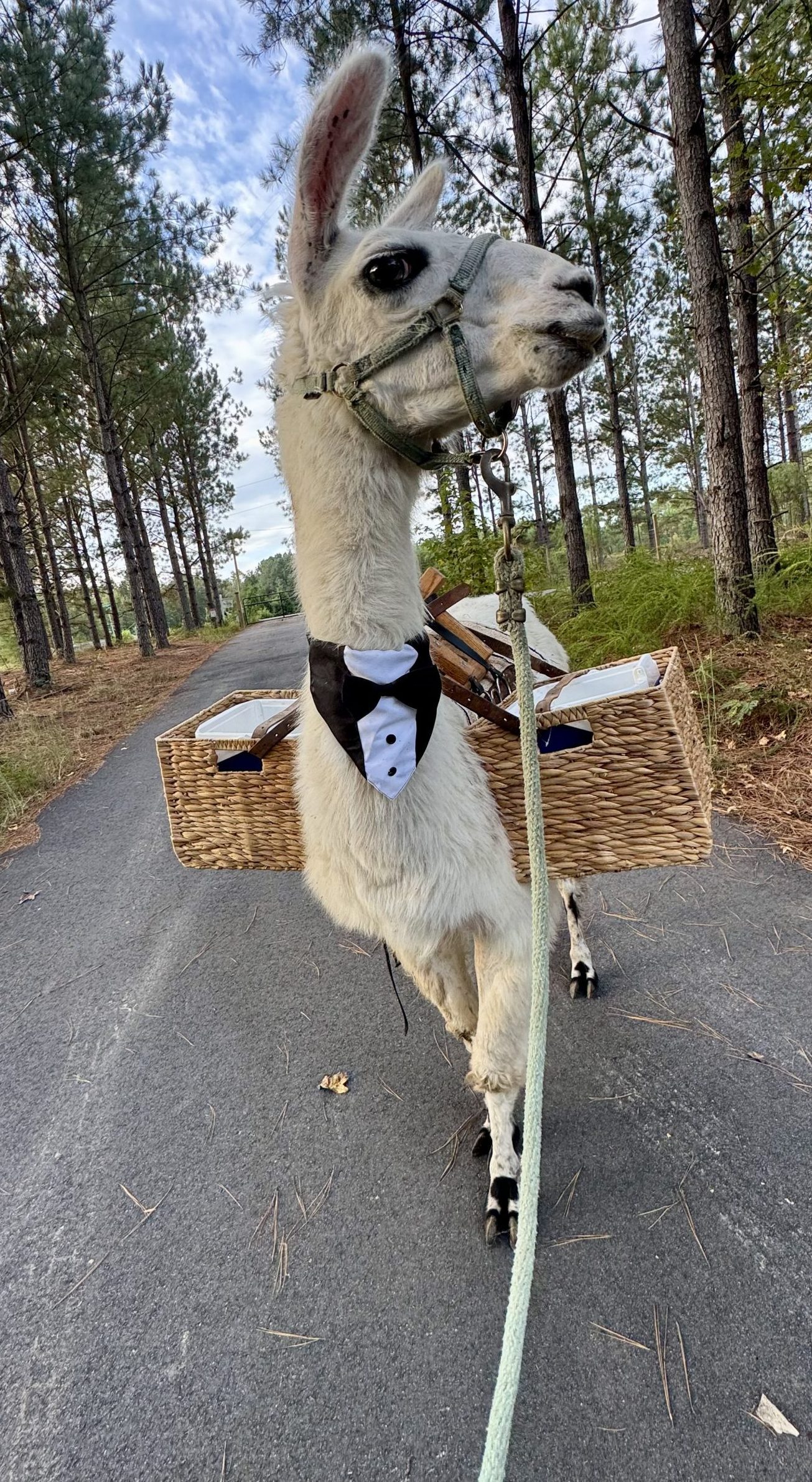 Our donkeys & llamas have been used as unique transportation to distribute wedding goodies in their saddle bags and provide fantastic photo opportunities. They are exciting and a fun way to make your occasion more memorable.